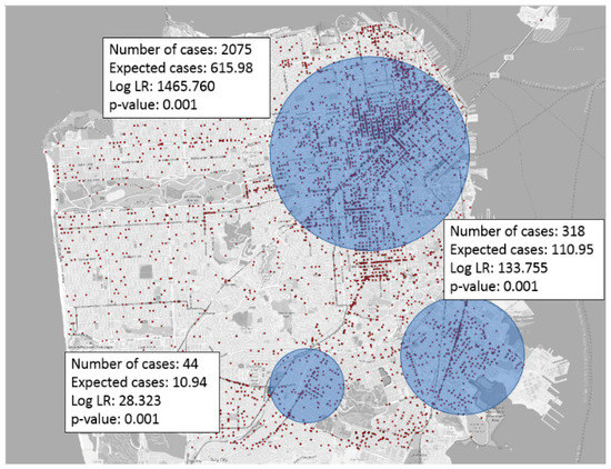 - Neill, D.B.; Moore, A.W. Rapid Detection of Significant Spatial Clusters. In Proceedings of the ACM SIGKDD (KDD ’04), Seattle, WA, USA, 22–25 August 2004. [Google Scholar]