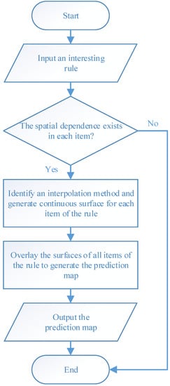 Finally, a prediction map of the applicable areas of the rule is obtained by overlaying all interpolated continuous surfaces of the attributes appearing in the rule.