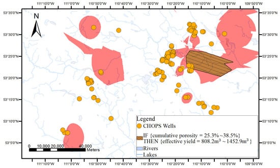 The source data of the 118 studied CHOPS wells in the case study were collected and saved in the database [19]. Each well record in the data contained reservoir property and oil production performance parameters of the well, and each well had its geospatial location in longitude and latitude coordinates.