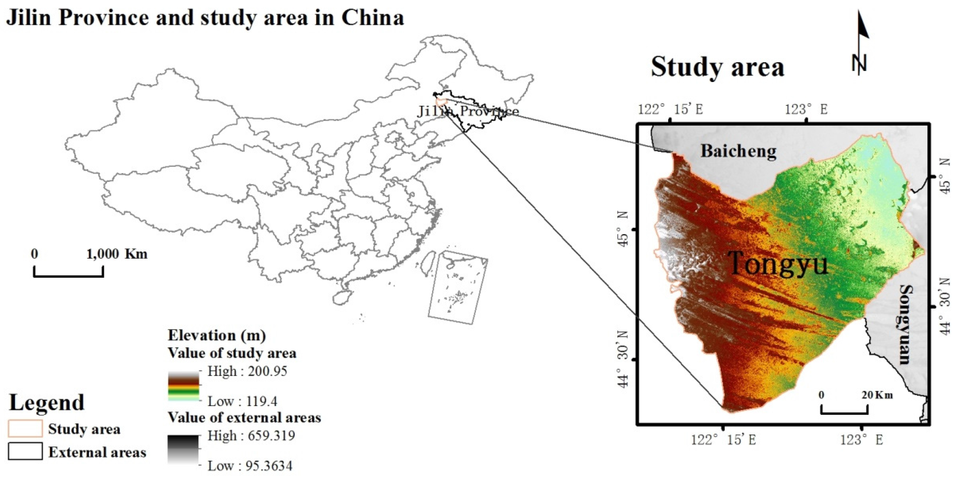 - Cui, J. The Study of Eco-environmental Change and Frangibility in Tongyu. Master’s Thesis, Jilin University, Changchun, China, 2006. [Google Scholar]