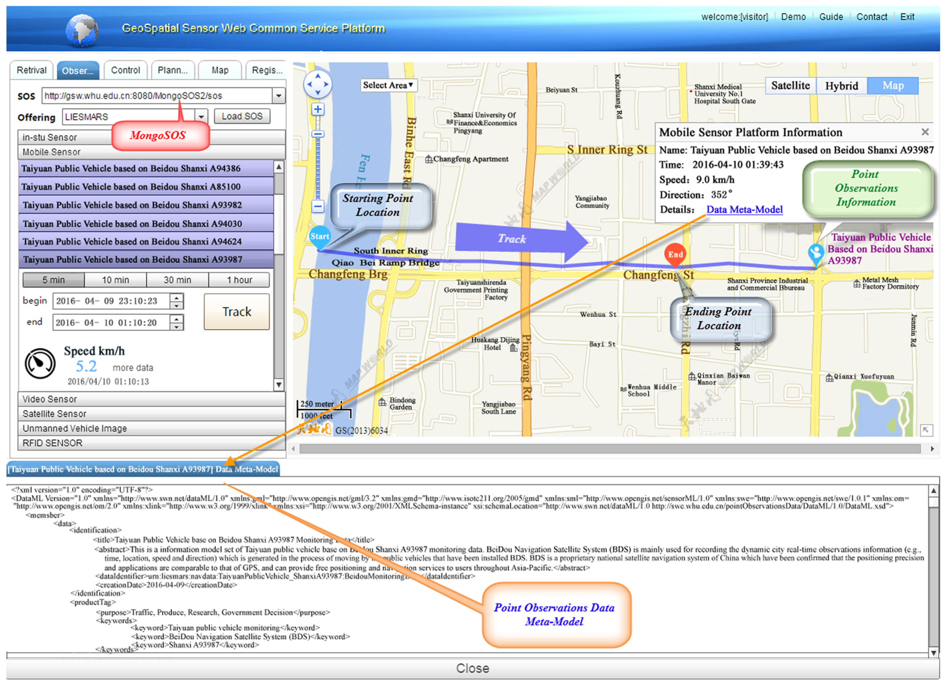 (3) Case studies are conducted, including the gas concentrations monitoring and the smart city public vehicle monitoring based on BeiDou Navigation Satellite System (BDS). The results demonstrate the versatility and extensibility of the DMM, and the spatio-temporal enhanced sharing for interdisciplinary instant point observations in smart cities.