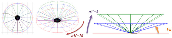 As input parameters, the realised program requires the focal length of the images that will be realised, nrow and ncol, the pixel size of the generated images, and the number of images that need to be extracted according to the vertical (nV) and horizontal (nH) steps (Figure 3).