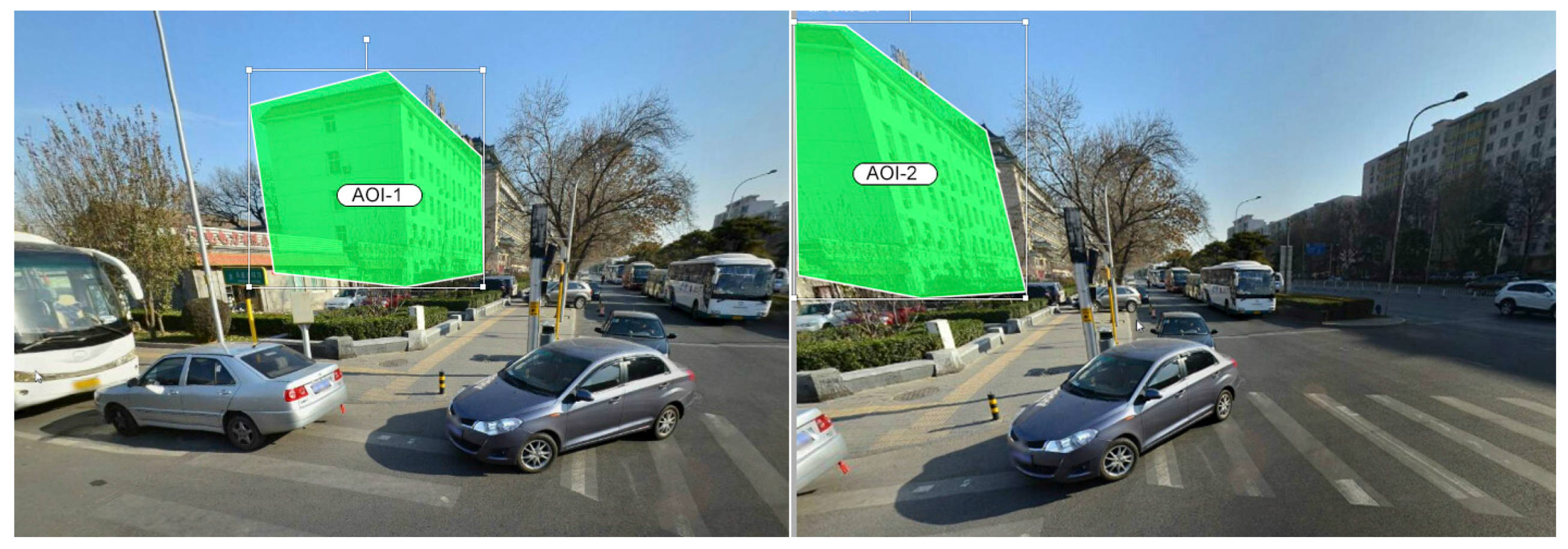 Eye-tracking experiments in situ differ from those in the lab. Previous studies indicate that field-based experiments using a mobile eye-tracking system may encounter calibration failure [28,56]. Furthermore, a field experiment provides less control of the environment and exerts intensive data-processing workloads [54]. In contrast, lab-based settings can provide a more controlled environment to collect eye-movement data and avoid facing the risk of calibration failure [57]. Therefore, we decided to adopt a lab-based eye-tracking experiment, leaving field navigation experiments for follow-up research.