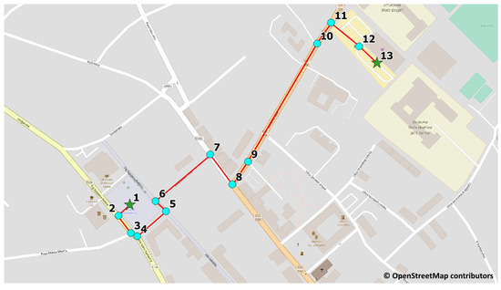 Figure 7. Route generated in Gospić, Croatia (base map © OpenStreetMap contributors).