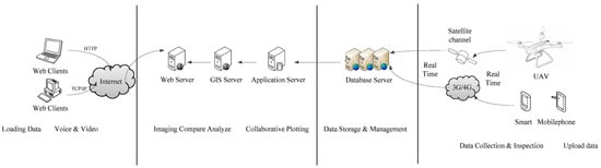 Existing landslide monitoring and management system mostly has the functions of data collection, disaster information production and distribution [14,26]. Real-time data collection and processing is the key to emergency management. Besides the general methods for data collection in hazard event (e.g., remote sensing and UAVs), we have developed a smartphone application that is used by people engaged in the hazard event for real-time ground data collection (photos, short video, etc.). Additionally, we have supplied an online cooperating emergency platform to achieve a real-time information exchange and communications among all decision-makers and experts in distinct locations for interactive cooperation. It supplies the functions of video conference and collaborative feature editing, which make the landslide analysis and hazard evaluation easier among different departments and multi-users. All users can access the database and decision-making system through a web browser on a computer with Microsoft Windows or a smartphone using an Android application developed with JDK (Java Development Kit) 1.7 (Figure 2). With the support of this online cooperating platform, we can distribute the landslide information in a short interval once the data is collected or processed. In this case, we have not only integrated different data sources (satellite/UAV images, DEMs, on-site photos, etc.), but also different applications (desktop, web-based, mobile app) for data collecting, processing, and sharing information, which can potentially enhance the process of hazard analysis and risk information management.