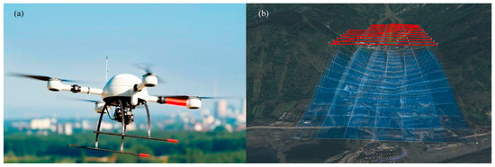 An unmanned aerial vehicle (UAV) and its path in one flight.