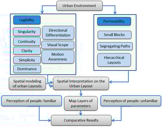 - Long, Y.; Baran, P.K. Does intelligibility affect place legibility? Understanding the relationship between objective and subjective evaluations of the urban environment. Environ. Behav. 2012, 44, 616–640. [Google Scholar] [CrossRef]