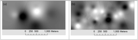 Next, first via the maps given, participants were exposed to the limits of the extent and its main streets, and then were taken to the studied area. They strolled through the streets as pedestrians and observed and scrutinized all areas and the selected neighbourhoods to judge their legibility. They delineated their own sketches and took pictures from the critical landmarks and scenes in the neighbourhoods. They were left for one day to fill the questionnaires. Figure 11a,b present the raster interpolation of the results. The pixel values are normalized between 0 and 1 and darker pixels represent the more legible and permeable values, respectively.
