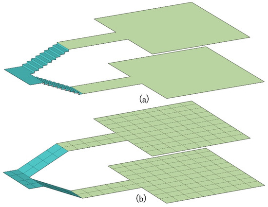 Because a building contains two types of indoor spaces (as shown in Figure 6a, a building is a footprint consisting of horizontal and vertical spaces), an emergency grid should be established based on different geometric characteristics. As shown in Figure 6b, a horizontal emergency grid can be represented as a set of connected grids with a certain elevation. To seamlessly connect the horizontal emergency grids, the vertical space can be represented as a set of connected grids with elevation and slope, such as a staircase. Note that a staircase is not available to an individual in a wheelchair. Consequently, this paper assumes that an individual in a wheelchair can receive help from others to utilize staircases.
