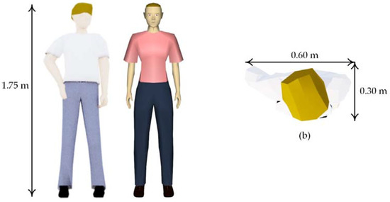 When considering slower Movement Types, such as that of disabled people, the evacuation speed should be reduced. According to Christensen and Sasaki [56], the speed of disabled people who do not need help is 0.78 m/s, the speed of disabled people who do need help is 0.36 m/s, the average speed of an electric wheelchair is 0.69 m/s, and the average speed of a manual wheelchair is 0.89 m/s.
