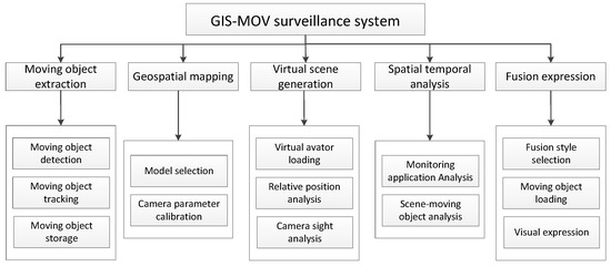 - Fusion representation module: This module is used to select the fusion pattern between the moving objects and the virtual geographic scene. It performs visual loading on video images, moving object trajectory, sub-images, avatars, and spatial–temporal analysis results.