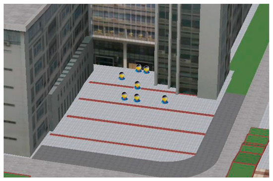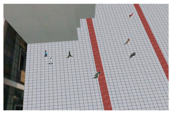Representation: The geospatial position of each sub-image of every moving object is obtained by spatial mapping. The sub-images are then fused and displayed in its geospatial position in the virtual scene according to its corresponding geospatial location, as shown in Figure 4.