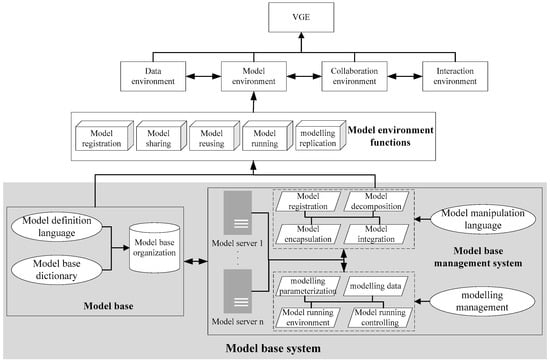 The analysis above shows that one of the key assumptions underlying an MBMS is that models, like data, are important organizational resources and should be managed with as much rigor and attention as data []. Thus, an MBMS should provide functional counterparts of a DBMS, including model description, model manipulation, and model control, although an MBMS is expected to be much more complex than a DBMS []. When developing VGEs, researchers have also mentioned the need for a model base frequently in recent years, but investigations of model base theory and of MBMS for VGE models is still in progress [,]. Based on this foundational research, it is reasonable to investigate the model base and MBMS and design the framework for a VGE model to improve the replication capabilities of model-based research.