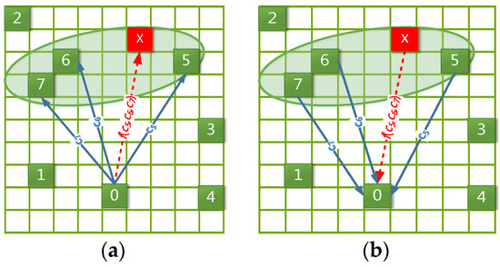 The predicted result of Markov is shown in Figure 19. Due to the sparse data, the number of candidate predicted locations (colored grid) is merely four. The model did not incorporate the correct destination (grid of black “+”) into its result set. Therefore, when k ≥ 8, it would not be a correct time, and its TE = 300 m (the distance between the yellow grid and grid of black “+”).