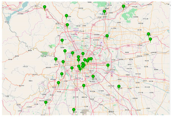 We evaluated our model based on real air quality datasets from Beijing, which were collected between 5 January 2014 and 30 April 2015. Data included PM2.5, CO, SO3, O3, NO2 and other attributes, each of which was collected at 36 air quality monitoring stations at hourly intervals, as depicted in Figure 8. The dataset contained a total of 8759 records [30] (Table 1).