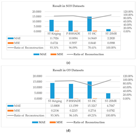 Performance of the ST-2SMR using different spatio-temporal datasets. (a) The result of the experiment in NO2 datasets; (b) The result of the experiment in CO datasets; (c) The result of the experiment in SO3 datasets; (d) The result of the experiment in O3 datasets .