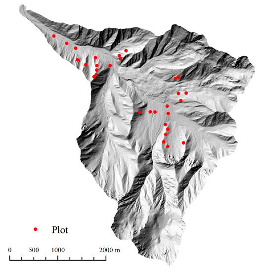 Distribution of plots in Tianlaochi catchment, Gansu Province, China.