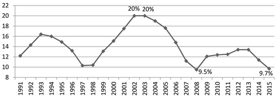 Unemployment rate in Poland (1990–2015). Source: Own elaboration.