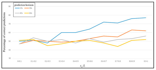 Changes in the percentage of the correct predictions with respect to the initial location of the vehicle.