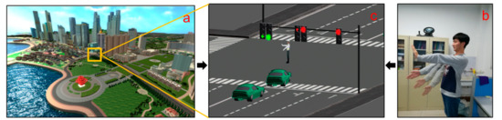 - We built a virtual traffic interaction environment with virtual reality technology. Users can have interactions between their actions and the objects in the virtual traffic environment through a communication interface, experiencing and interacting with “real traffic crossroads.”