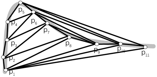- Lee, D.T.; Schachter, B.J. Two algorithms for constructing a Delaunay triangulation. Int. J. Comput. Inf. Sci. 1980, 9, 219–242. [Google Scholar] [CrossRef]
