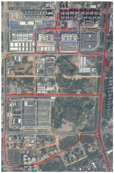 Figure 16 compares the generated road network graphics with the existing street map overlay. In Figure 16, the road network graph generated in this paper is consistent with the actual road network structure, and the line segment of the road network is located at the center of the road with high accuracy. However, some roads on the street map did not generate corresponding road network segments. This is because the experiment only applies the truck trajectories which cannot cover all roads in the area, thus, to generate a more complete road network, a variety of different vehicle trajectory data would be better. In addition, some road segments in the generated road network graphics do not have corresponding roads on the street map as depicted in Figure 16. By referring to the high-definition satellite map in Figure 17, it can be found that these segments have corresponding roads. However, the tradition road network update method is slower, so it has not been updated on the street map at the time of the experiments.