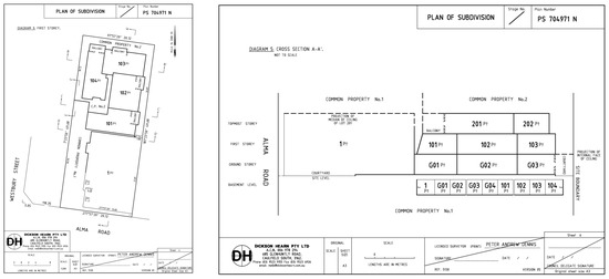 In Victoria, building subdivision plans (strata plans) are mainly created in PDF format and submitted to land registry. These plans include floor plans and cross-sections, as illustrated in Figure 1. Floor plans and cross-sections assist to define and understand overlapped ownership rights in building subdivision plans [38].