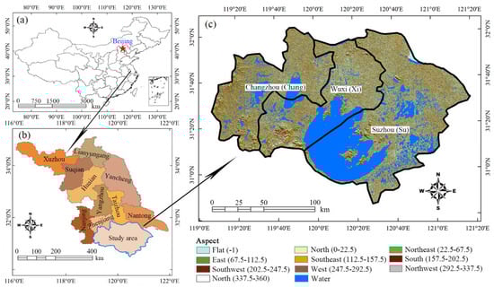 Study areas: (a) China, (b) Jiangsu Province, and (c) Administrative boundary of the Su-Xi-Chang Agglomeration.