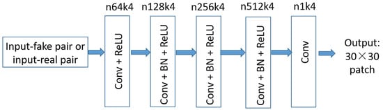 Here, function is adopted to relax the gradient insufficient at the beginning of the training [19]. From a second perspective, the generator’s objectives are not only to fool the discriminator, but also to generate the image near the real output y in the sense of distance. To encourage less blurring, distance is absorbed into the cGAN loss