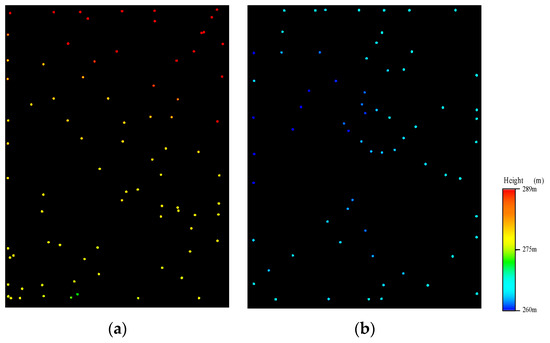 In this paper, we mainly focus on the process of iterative densification. To weaken the effect of seed points on filtering results, the seed points were selected by operators. The selected seed points for two test areas can be seen in Figure 7.