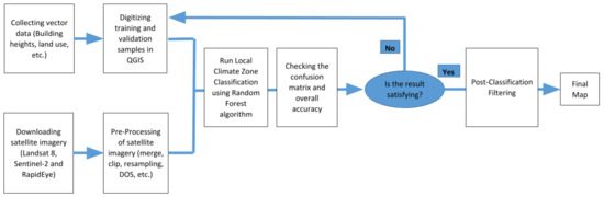To perform the LCZ classification, a number of steps were required which are summarized in the flowchart in Figure 3.