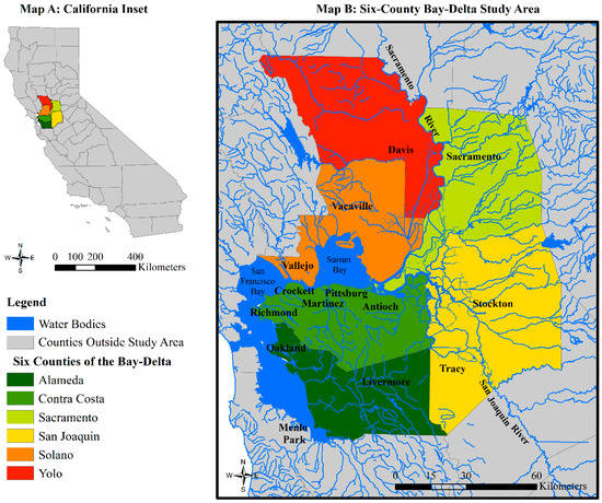 - Liévanos, R.S. Sociospatial dimensions of water injustice: The distribution of surface water toxic releases in California’s Bay-Delta. Sociol. Perspect. 2017, 60, 575–599. [Google Scholar] [CrossRef]