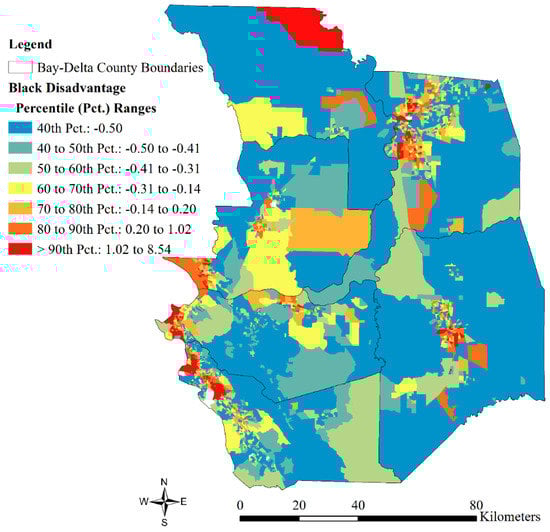 | Black disadvantage, 2000 | 0.106 * | 0.049 | 1.111 | 1.009−1.224 |