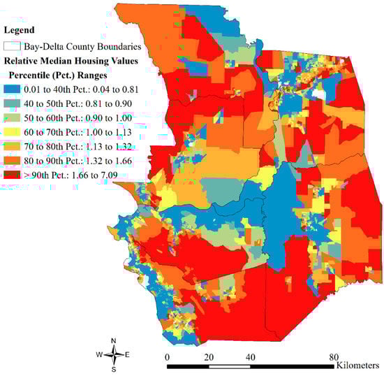 | Relative median housing value, 2000 | 0.95 | 1.08 |