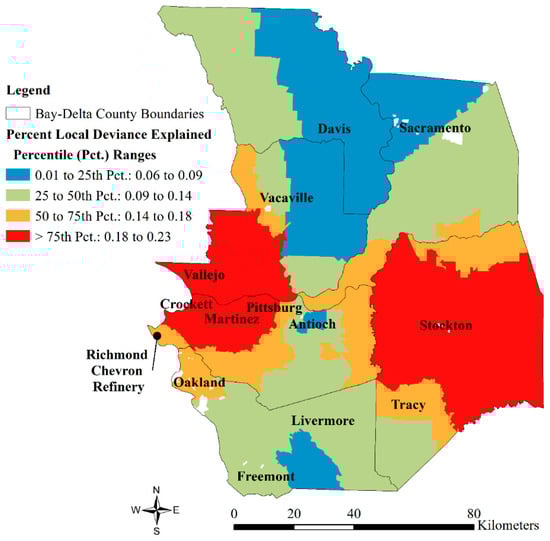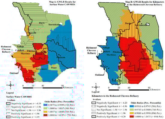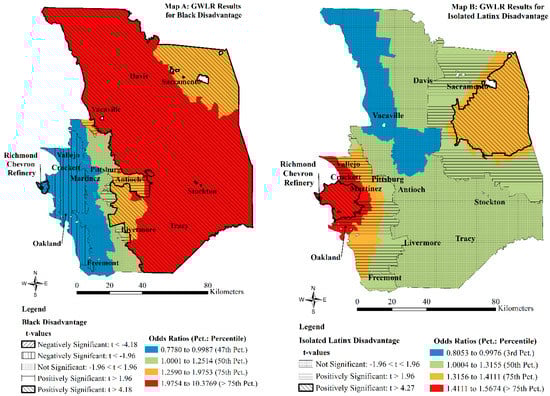 - Gilbert, A.; Chakraborty, J. Using geographically weighted regression for environmental justice analysis: Cumulative cancer risks from air toxics in Florida. Soc. Sci. Res. 2011, 40, 273–286. [Google Scholar] [CrossRef]