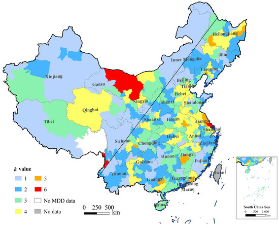 where CPD and MDD represent the urban population density from the census data (unit: People/km2) and the density of Mdiffs at the prefectural city level (unit: Meter/km2), respectively. The K value is reasonable as long as both the CPD and MDD are larger than zero.