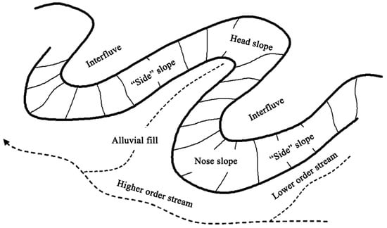 - Matsuura, T.; Aniya, M. Automated segmentation of hillslope profiles across ridges and valleys using a digital elevation model. Geomorphology 2012, 177–178, 167–177. [Google Scholar] [CrossRef]