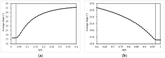 Relationship between the average slope and RPI: (a) lower-slope; (b) upper-slope.