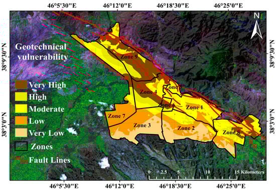 For the regions with seismic activity, evaluating the geotechnical seismic vulnerability is vital for urban expansion and development. As a result, to ignore or not classifying areas with a significant risk of earthquakes enhances the probability of seismic vulnerability and destruction. In general, seismic hazards are typically estimated by examining previous earthquake activity in the area. Consequently, the confirmation related to the probability of the structure tolerates disturbances inside the fault zones and the mode of travel of the seismic waves above the crust and overlying soil beneath the sites. It is important to reiterate that during an earthquake, the incidence of surface separation, soil liquefaction, and landslides, accompanied by peak ground acceleration (PGA), constitute the secondary events rising from the ground movement, which intensify the seismic vulnerability and devastation. Therefore, they must be considered when estimating the overall seismic vulnerability. However, the occurrence of these actions is linked to the subsurface plane above a major release and after effects such as movement and folding such as lateral spreading. Due to inadequate data on layered sub-surfaces and surface rupture, landslides and soil liquefaction in Tabriz city were not analysed in this study.