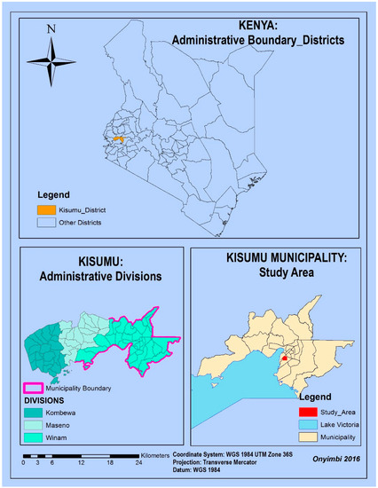 This study was carried out in Kisumu, an inland port city along the shores of Lake Victoria, Kenya. Kisumu, the third largest city of Kenya, is located on the Northern tip of the Winam Gulf of Lake Victoria (