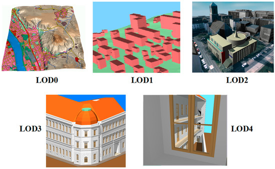3D modelling was done in various levels of detail (LoD). These multiple scales ranged from LOD0 to LOD4 as defined by City GML specifications (
