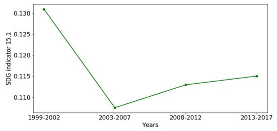 SDG indicators are classified into three tiers based on the level of data availability at global scale and established monitoring methodologies []. Measurements for SDGs are based on statistical data provided by member countries, which are required to regularly report their national progress towards each target. The joint United Nations Economic Commission for Europe (UNECE)/Eurostat/Organization for Economic Co-operation and Development (OECD) working group on statistics are working on identifying good practices to assist governments in the design of sustainable development indicators to be used at national level []. The metadata repository provides guidance for calculating statistics for SDG indicators. Nevertheless, specification for measuring some targets are still lacking and there are still major issues concerning comparability and scalability. For instance, the metadata for SDG 15.1.1 [] does not specify any requirements for the type of data, but explains that all national data should be compiled and provided to the Food and Agriculture Organization (FAO) following their standard format for country reporting, which includes original data, descriptions of their use, and reference sources. Complementary approaches such as remote sensing could help improve the comparability and scalability of national progress measurements, but no alternatives are proposed in the SDG metadata.