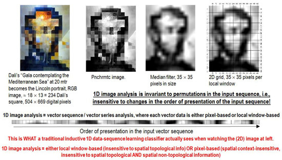 A synonym for inherently ill-posed scene-from-image reconstruction and understanding [13,23,75,76], vision is a cognitive (information-as-data-interpretation) process [18], encompassing both biological vision and CV, where CV is subset-of artificial general intelligence (AI) [77,78,79,80,81], i.e., AI ⊃ CV, in the multi-disciplinary domain of cognitive science [18,77,78,79,80,81], see Figure 2. In vision, spatial information dominates color information [23]. This unquestionable true fact is familiar to all human beings wearing sunglasses: in perceptual terms, human panchromatic and chromatic visions are nearly as effective [13].