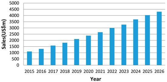 According to VisonGain’s forecast, the market size of military augmented reality will continue to grow in the next ten years (see Figure 3) [61]. Military augmented reality technology will get more and more attention in most countries. At present, the technology of urban warfare augmented reality is still in the stage of laboratory research and equipment testing and yet to be put into practical use. The development of UWAR system can also benefit from the fast advancing fields of GIS and virtual geographic environment (VGE). For GIS, the effort to collect high precision data of urban geography provides both references for registration in UWAR system and content-of-interest that needs to be represented in the system. For VGE, its research findings can be directly applied in UWAR system, such as the representation of urban building structural information, and the representation of obscured information in urban buildings.
