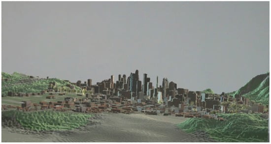 Based on the methods and the design of the experiment, the 3D digital city of Philadelphia is superimposed onto the physical world, and the combination of the two is realized. Figure 9 shows a schematic map of the introduction of digital city of Philadelphia onto the physical world. The white background is a physical wall, and the urban scene is a virtual Philadelphia 3D geographic scene. This is the integration result of the holographic digital city and the physical world. The Holo3DGIS used in this experiment has the following characteristics: