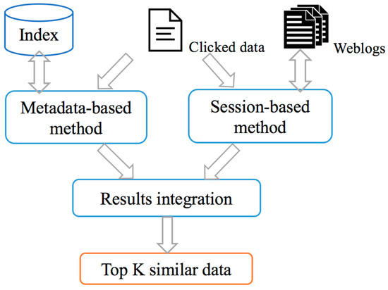 With the advancement of semantic technologies, an emerging approach to connecting data is to publish data as “Linked Data” [21]. A good example in geospatial domains is the GeoLink EarthCube project [22]. GeoLink allows users to browse the data by clicking on a metadata attribute (e.g., instrument) to view the related data that share the same attribute value. One issue is that it requires the data to be published using the semantic standards such as Resource Description Framework (RDF). Moreover, there could be many data related to the clicked data which can be overwhelming. Recommender system has achieved remarkable success in many commercial products (e.g., Netflix). It typically produces a list of recommendations in one of two ways—through collaborative and content-based filtering [23]. Vockner et al. [24] proposed a recommendation system based on LSA. As an early attempt in the geospatial domains, we therefore propose a hybrid recommendation method of measuring the relatedness of data with a few identified metadata attribute combined with users’ browsing behavior.