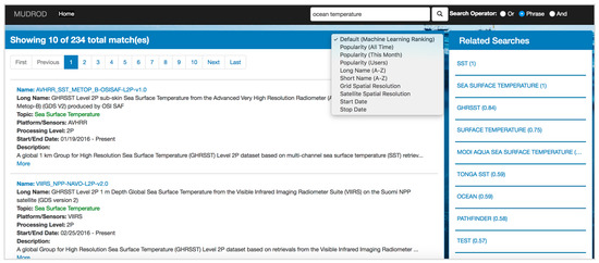 - Mining and Utilizing Dataset Relevancy from Oceanographic Dataset (MUDROD) Metadata, Usage Metrics, and User Feedback to Improve Data Discovery and Access. Available online: http://adsabs.harvard.edu/abs/2015AGUFMIN51B1809J (accessed on 10 May 2017).