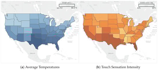 The Comparison between The Average Temperatures and Touch Sensation Intensity for Every State in The United States during Summer Season of 2010 to 2014.