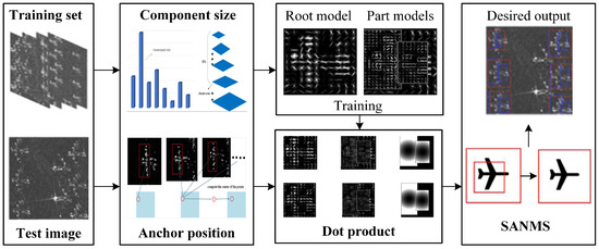 Targeting the sparsity in SAR imagery, a discriminative scheme inspired by a multi-scale component hybrid model [26] is utilized to advance the detection performance. The original image is zoomed into different scales to obtain features in different layers, thus achieving a multi-scale feature pyramid; then, the model consisting of a root filter and several part filters with anchor information is built; finally, the part and component models are trained to generate a hybrid model, so as to realize the multi-scale deformable component mixture model. Taking advantage of component features and structure information, this multi-scale, deformable, and hybrid model can largely deal with the sparsity for detecting objects in high-resolution SAR imagery.