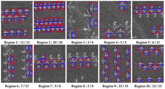 In Equation (12), means the number of all detected objects, and and represent the number of correctly detected aircrafts and objects that are falsely detected as aircrafts, respectively. Therefore, . indicates the number of total aircrafts, including the correctly detected aircrafts and the missing number; in the following experiments, . These indexes are counted in each image individually, then the overall measurement indexes are added up and computed.